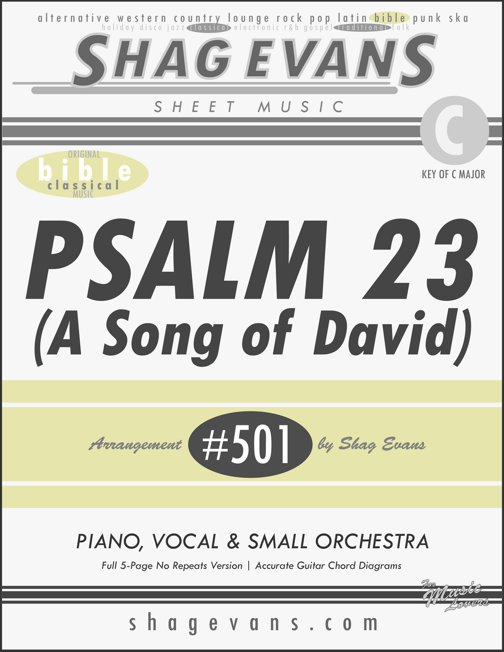 PSALM 23 (A Song of David) A501C - Sheet Music - Key of C - Piano, Vocal & Small Orchestra